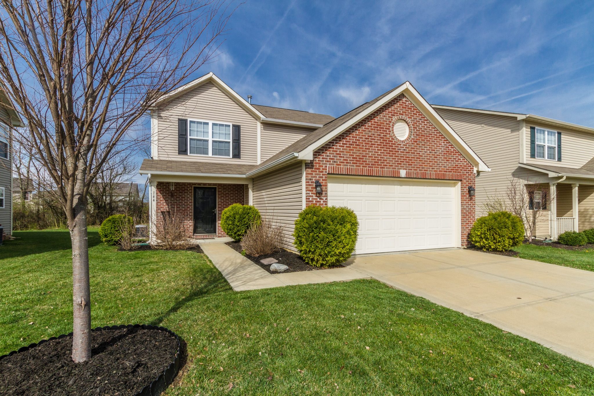 Why build when you can own this one owner move-in ready 3BR/2.5BA home? Blinds included, neutral colors and fresh carpeting throughout home. Main floor features kitchen with breakfast room, large great room and half bath. Second level features master suite with walk-in closet and master bath as well as two additional bedrooms and another full bath. Great established lot with a tree line in rear to provide privacy from neighbors and features an over-sized concrete patio on the rear of the home.